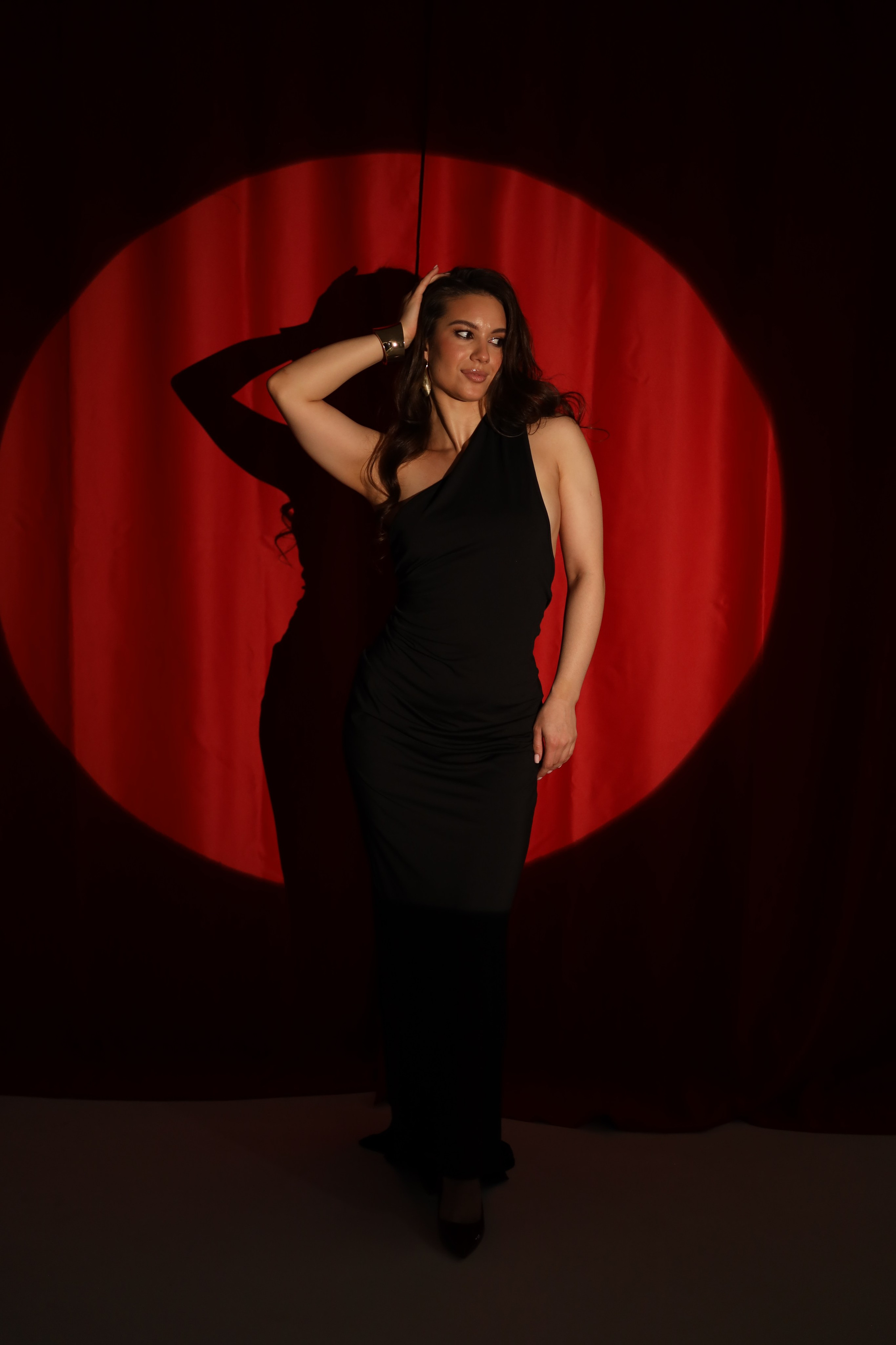 Черное платье на одно плечо с вырезом на спине